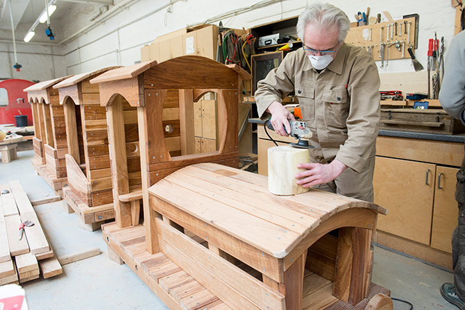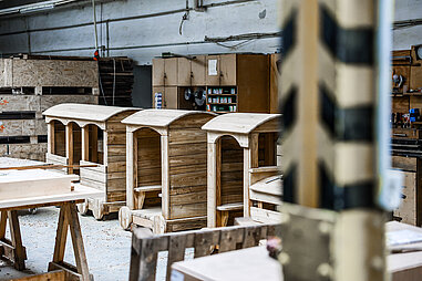 Der hohe Qualitätsstandard wird sichergestellt durch fest angestellte Fachleute, die die AGH- und §16i-Kräfte anleiten. Alle Spielgeräte werden nach DIN-Norm in eigener Werkstatt hergestellt und sind TÜV-überprüft.