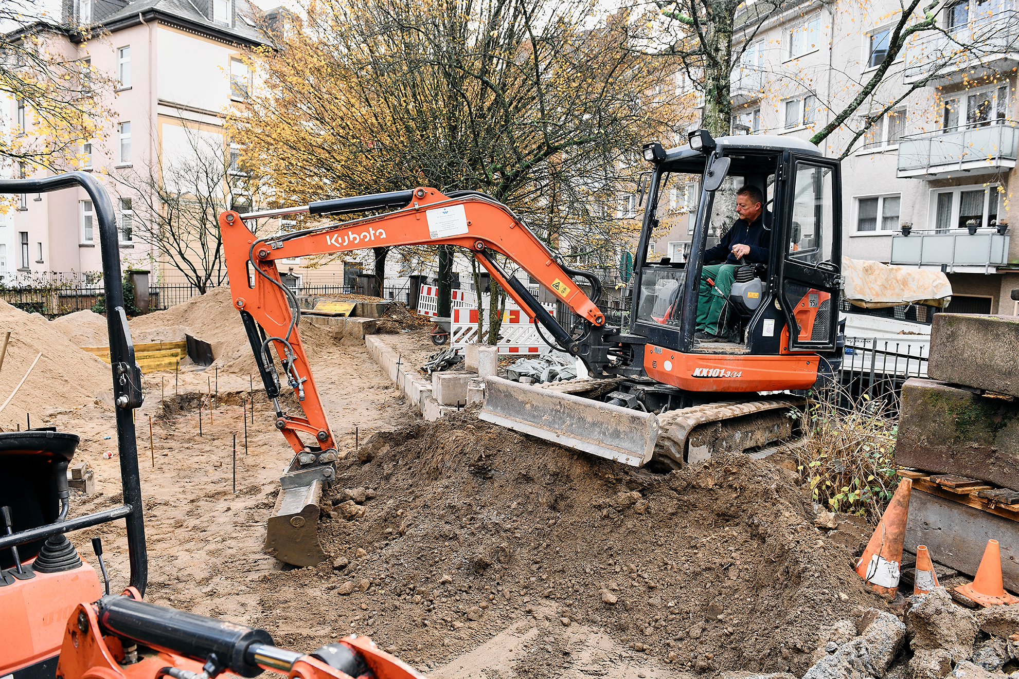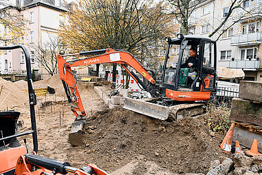 Auch die landschaftsgärtnerischen Arbeiten realisiert ein Team fest angestellter Mitarbeiter:innen, so dass der Spielplatzsanierungsdienst mit eigenem Maschinenpark in der Lage ist, ganze Spielplätze mitsamt der Gartenbauarbeiten zu gestalten.