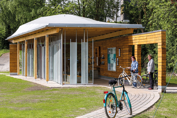 Unter fachmännischer Betreuung haben langzeitarbeitslose Menschen in Arbeitsgelegenheiten etwa 80 Prozent der Bauarbeiten innerhalb nur eines halben Jahres durchgeführt. Eine Leistung, auf die alle stolz sein können - vor allem, weil aus einfachen Materialien ein ästhetisches Gebäude entstanden ist.