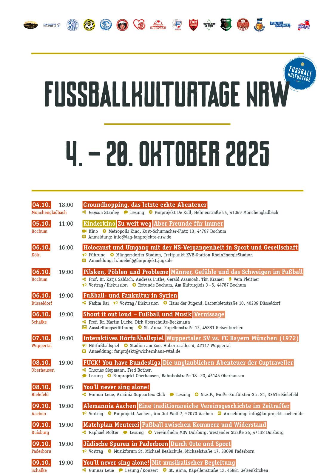 Schauen Sie/ schaut euch auch unbedingt die Programme der anderen Fanprojekte an.